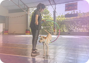 • Praca z psem lękowym ( nauka budowania bezpiecznej przestrzeni i poczucia bezpieczeństwa)